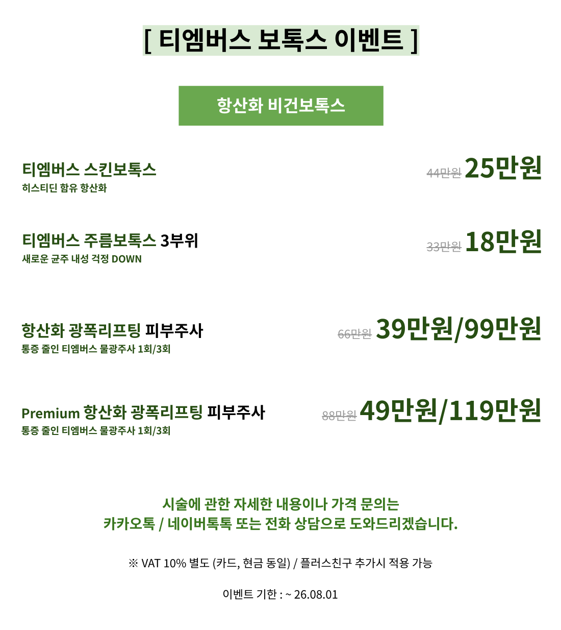 [NIKS] 항산화 보톡스 ❤︎티엠버스❤︎ 이벤트 페이지 정보 작성자 최고관리자 댓글 0건 조회 2,067회 작성일 25-10-17 18:58 목록 답변 본문 이전글[NIKS] 고압산소치료 & 혈액디톡스 25.10.17 다음글[NIKS] 바르는 ❤︎위코우노❤︎ 스킨부스터란? 25.10.17